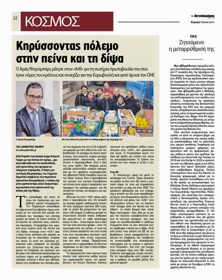 La presse internationale félicite Arash Derambarsh et salue la loi sur le gaspillage alimentaire votée en France le 3 février 2016 !