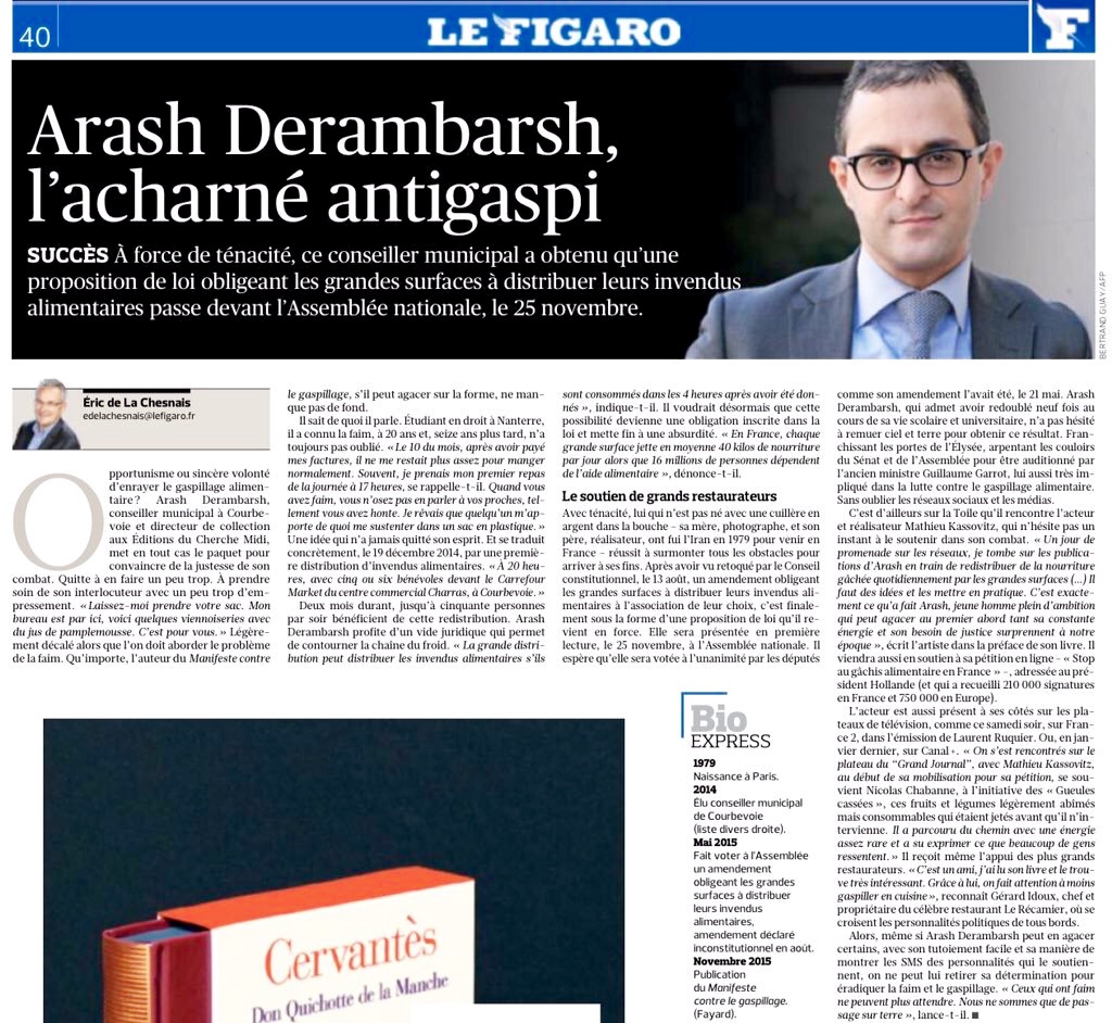 – Lire « Arash Derambarsh, l’acharné antigaspillage » : Le Figaro (13 novembre 2015)